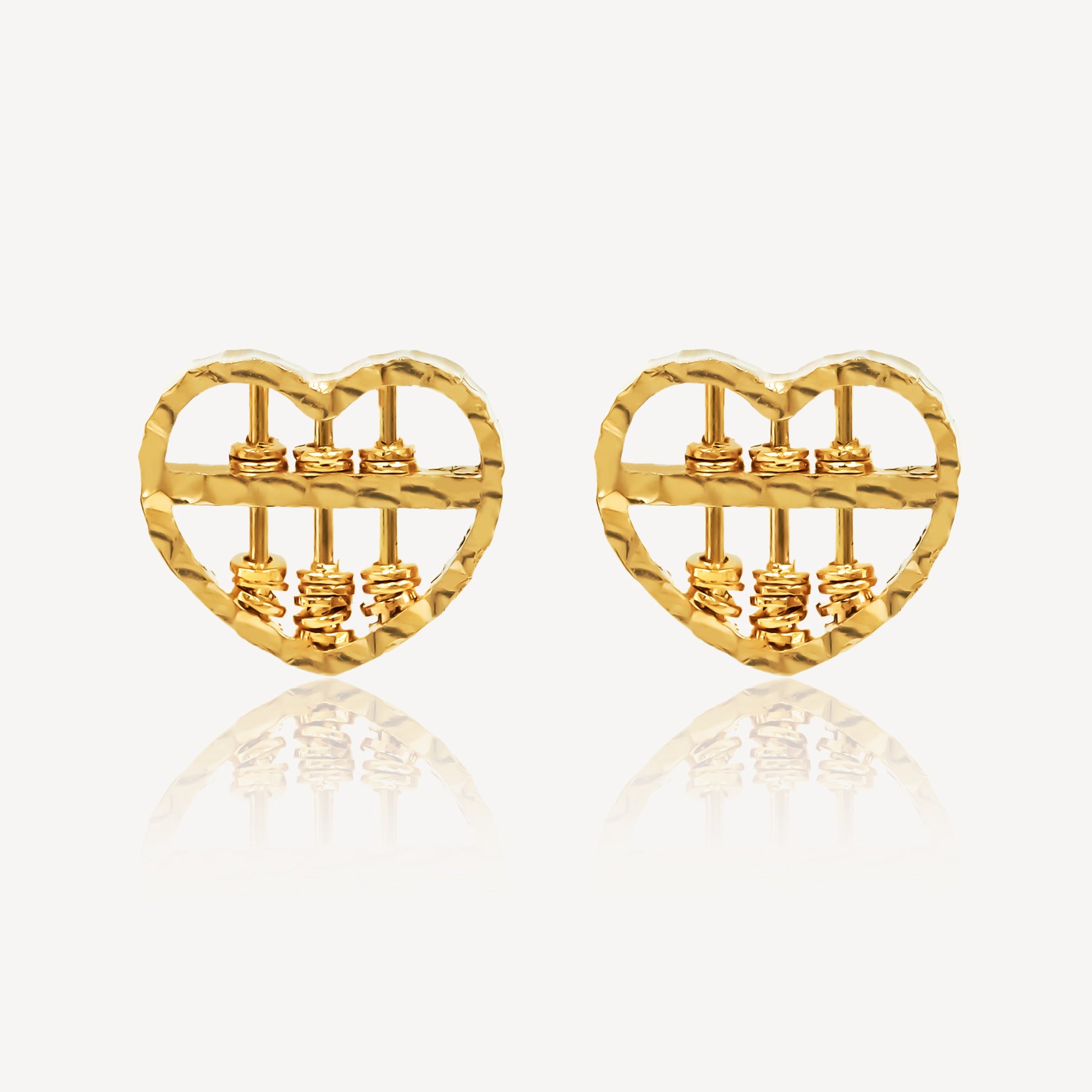 Indulge in the timeless elegance and sophistication of our 916 Gold Abacus Love Earrings. Crafted with the highest quality 916 gold, these earrings beautifully showcase the intricate details of an abacus while exuding love and affection. A perfect addition to any outfit for a touch of luxury and style.