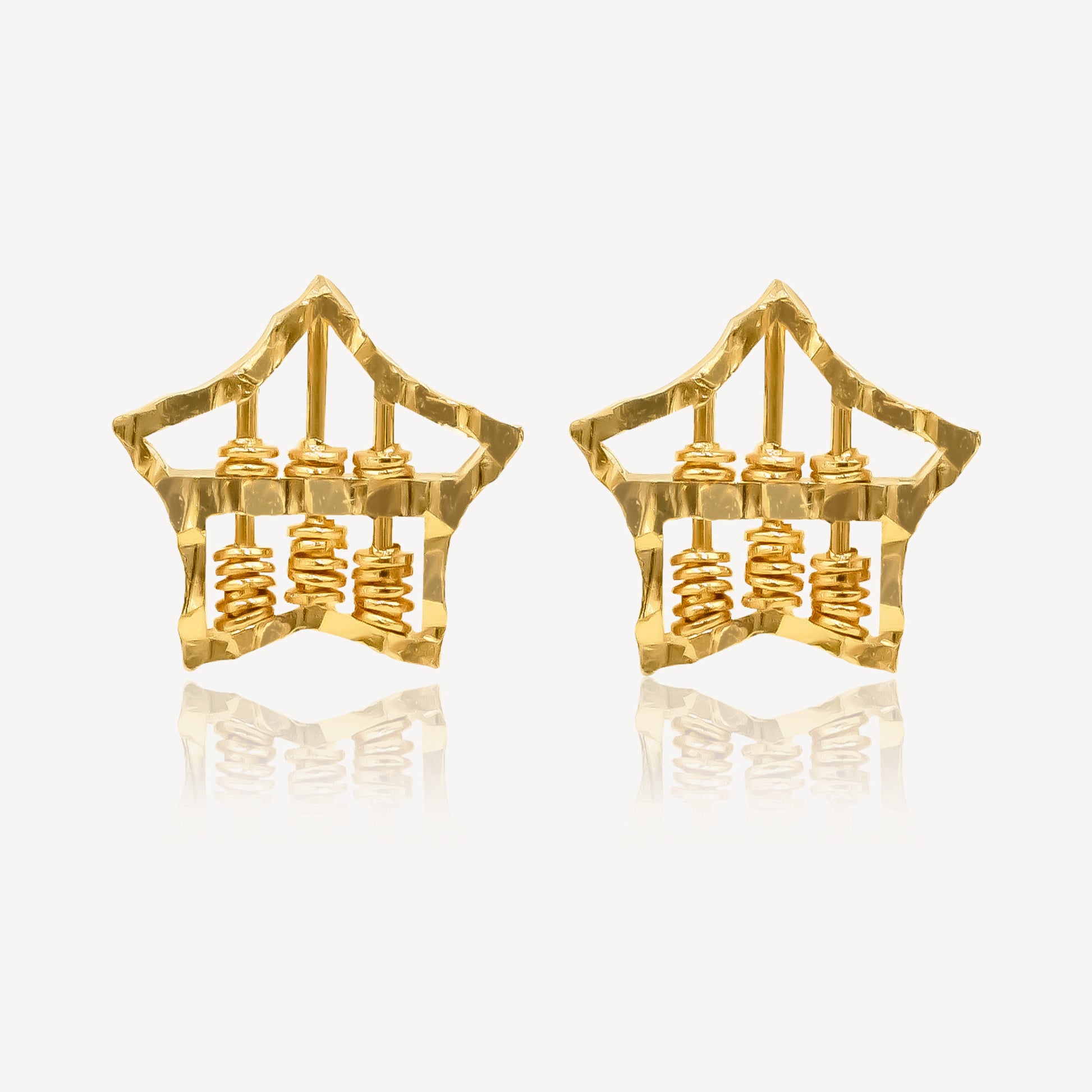 This 916 Gold Abacus Star earring is a stunning piece of jewelry that combines style and elegance with the timeless beauty of gold. Crafted from 916 gold, this earring features a unique abacus star design that is sure to catch the eye. Add a touch of sophistication to any outfit with this exquisite earring.