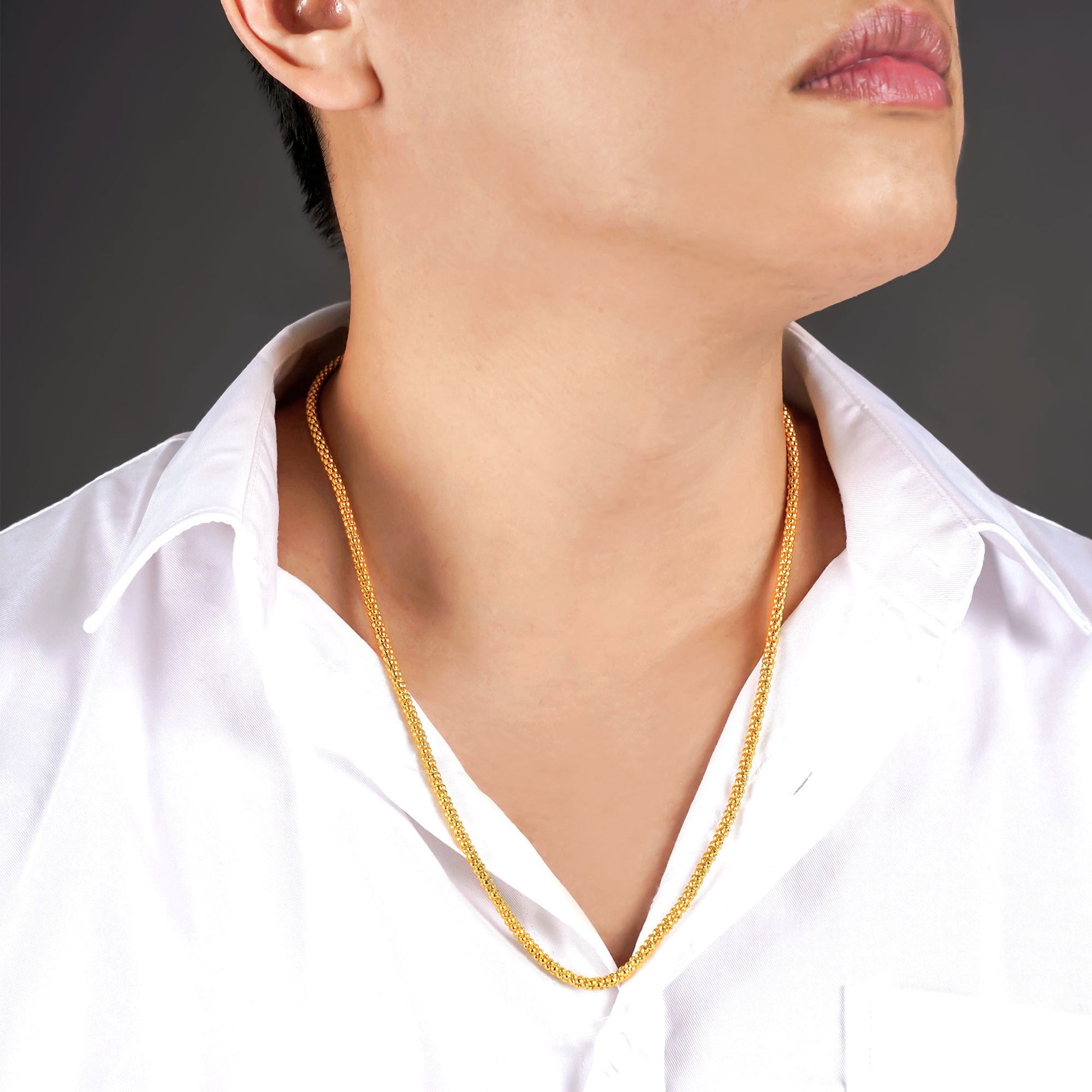 Featuring the 916 Gold Bombakto Chain which is an elegant and beautiful piece of jewelry that can be worn on many occasions. It's one of the most versatile and beautiful chains we carry. The 916 Gold Bombakto Chain is one of the most versatile and beautiful chains available. The gleaming 24K Gold gives it a luxurious look!