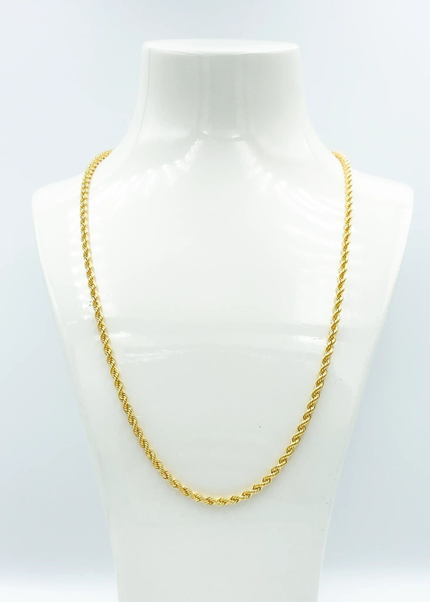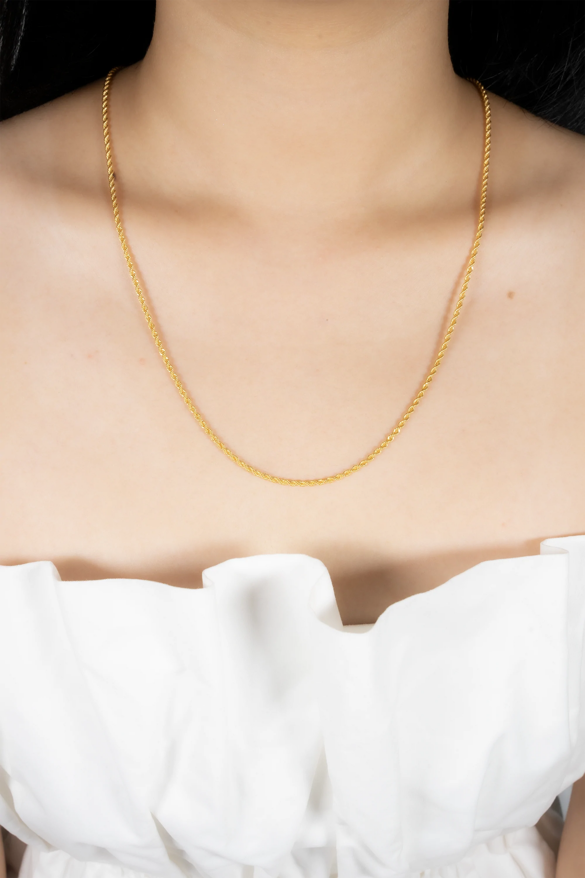 Crafted from premium 916 gold, this 1.5mm hollow rope chain offers a lightweight yet durable design, ideal for everyday wear. Its sleek profile delivers a graceful shine, making it suitable for both casual and formal occasions. The hollow construction ensures comfort without compromising on strength, creating a timeless accessory that enhances any outfit with subtle elegance.