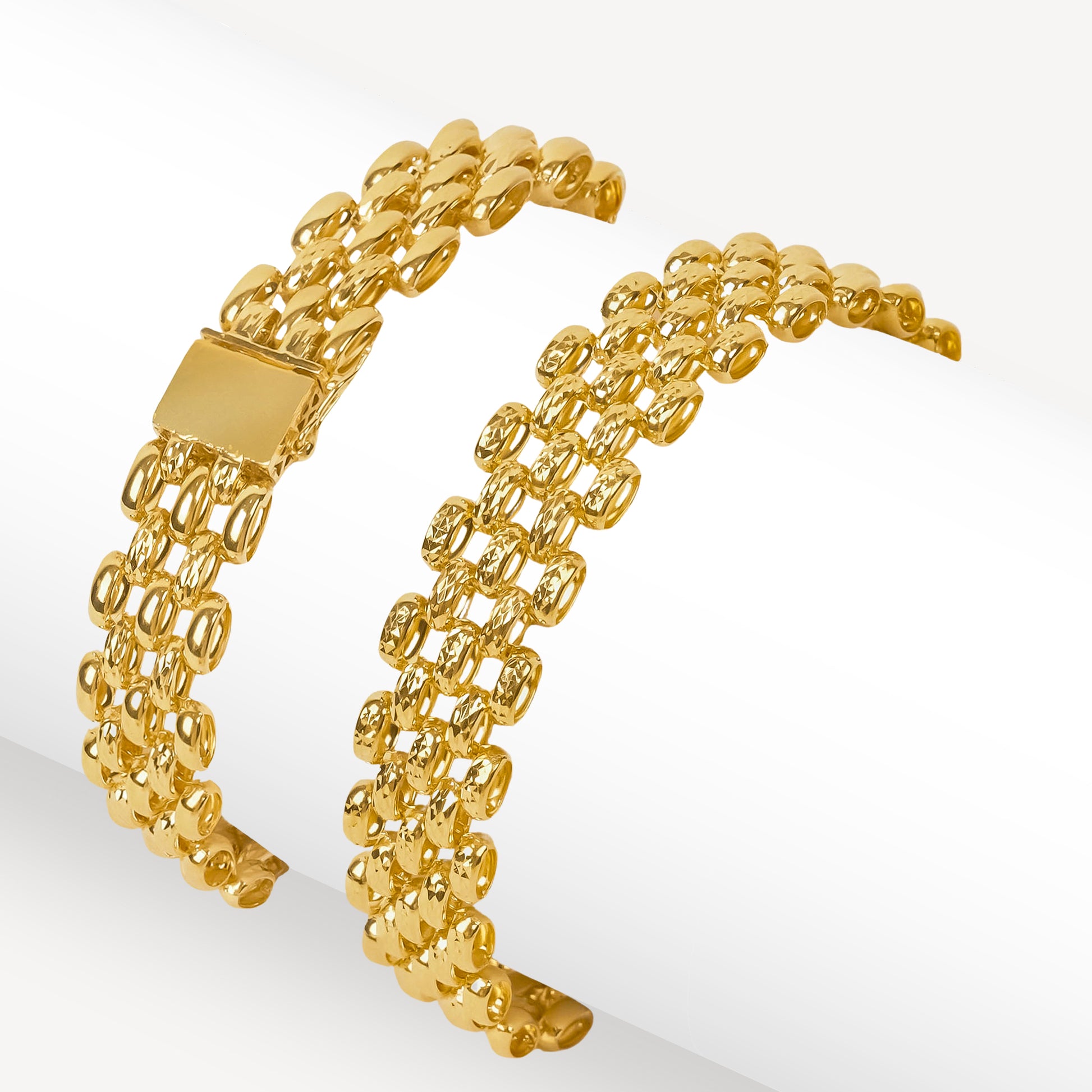 Introducing the luxurious 916 Gold Mega Datin Bracelet, expertly crafted with the finest 916 gold. Its exquisite design and high-quality craftsmanship showcase elegance and sophistication. Elevate any outfit and make a statement with this timeless piece that is sure to impress.